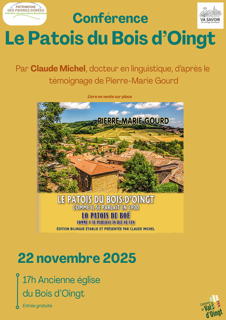 Conférence sur la langue Francoprovençal et ses caractéristiques locales au Bois d’Oingt d’après des témoignages de Pierre-Marie Gourd, par Claude Michel.